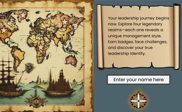 Gamified Learning Experience: Learners embark on an exciting journey through four unique worlds earning badges by challenging their understanding of how to react to various situations as a manager, making the learning process fun and rewarding.